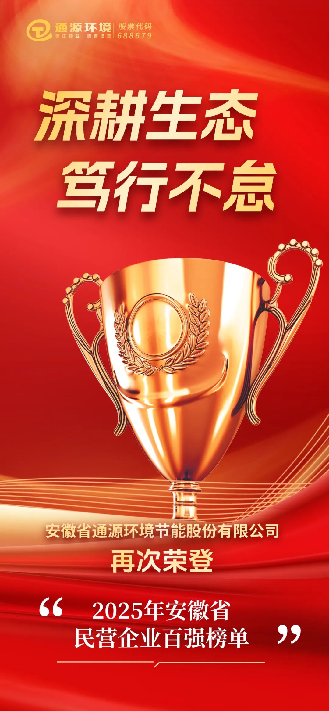 2025年10月16日上午,备受瞩目的2025安徽省民营企业百强系列榜单发布会在合肥隆重举行。作为生态环保领域的标杆企业,通源环境凭借在污染治理、生态修复、资源循环利用等核心业务板块的深耕细作与卓越表现,再次荣登榜单。